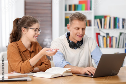 Fototapeta premium Students preparing for exam at table indoors