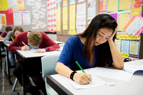 Fototapeta premium Students sitting an exam in a classroom
