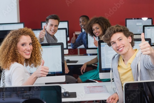 © WavebreakMediaMicro, Obraz premium Students smiling at camera in computer class