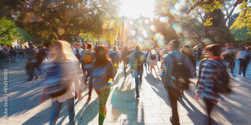 © Mr. Stocker, Obraz premium Students walking through a college campus on a sunny day