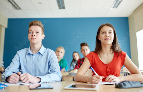 © Syda Productions, Obraz premium students with notebooks and tablet pc at school