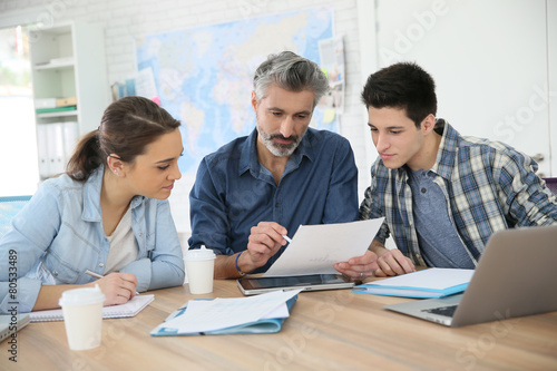 Fototapeta premium Students with trainer working on project