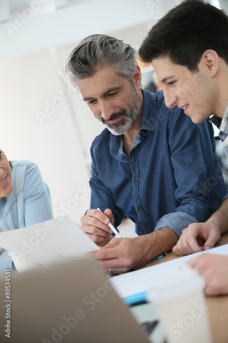 Fototapeta premium Students with trainer working on project