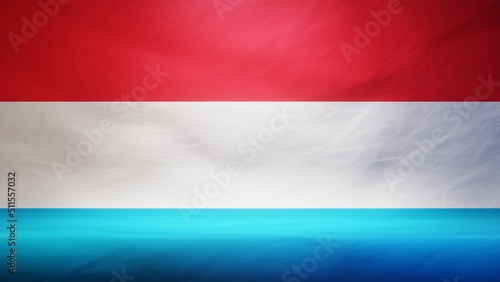 © HTGanzo, Naklejka premium Studio backdrop with draped flag of Luxembourg for presentation or product display. 3D rendering
