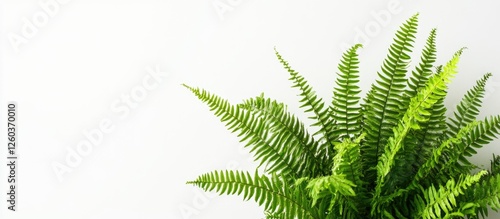 Naklejka premium Studio image of a lush Nephrolepis exaltata Boston fern in vibrant green against a pristine white background with ample copy space