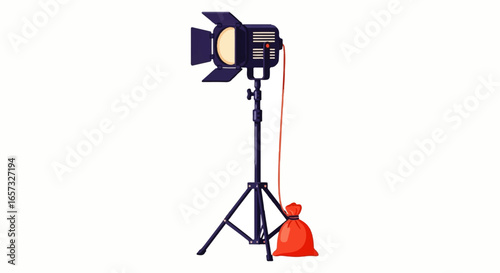 © Anggarin.Works, Obraz premium Studio Lighting Equipment: Professional Film Light on Tripod with Barn Doors and Cable