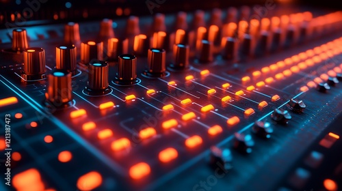 Obraz premium Studio Mixer Controls, Audio Production, Night
