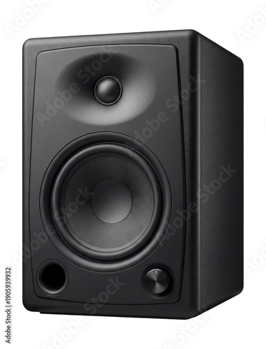 Fototapeta premium Studio monitor with matte black finish, front-facing bass port, and single...