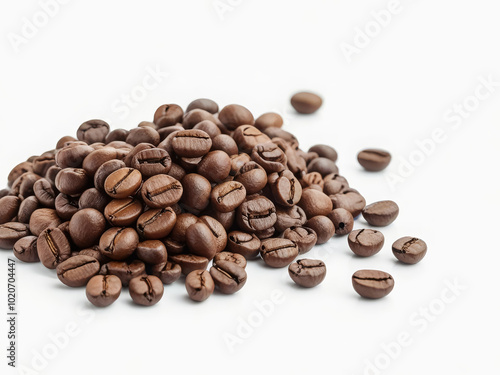 Naklejka premium Studio photo of coffee beans in a pile on a white background