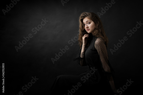 © kulichok, Fototapeta premium Studio portrait of a beautiful girl on a black background