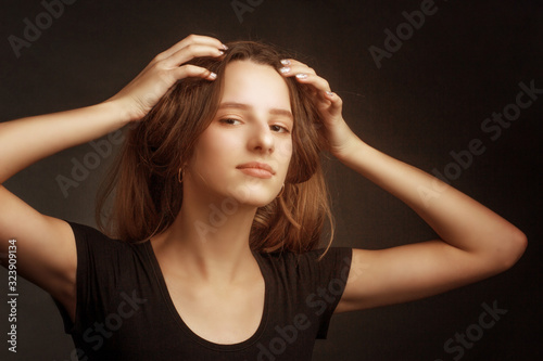 Fototapeta premium Studio portrait of a girl in a black t-shirt