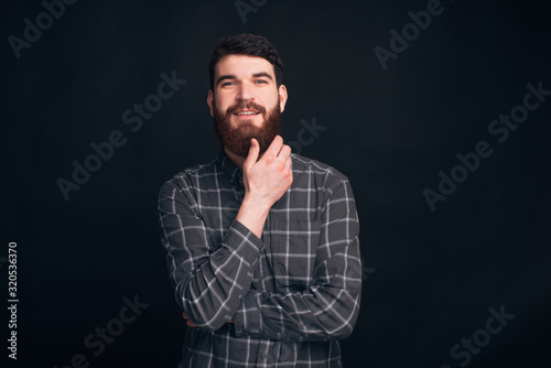 Fototapeta premium Studio portrait of a handsome man wearing a shirt on black background.