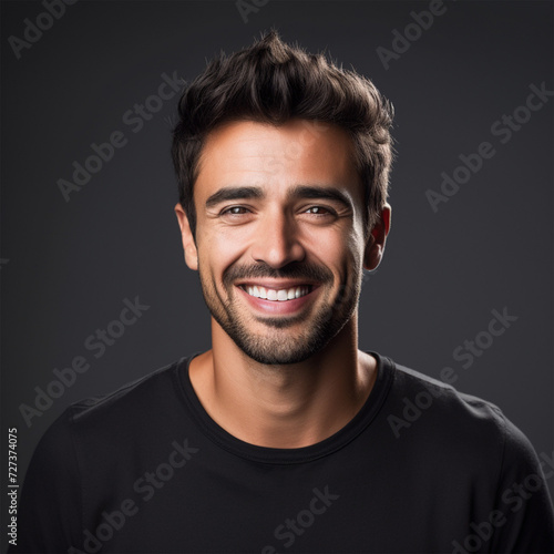 Fototapeta premium Studio portrait of a man smiling. Black background. Advertisement for dental, business, studio, etc.