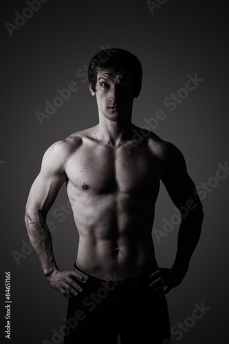 © Belyaevskiy, Fototapeta premium Studio portrait of a sporty young man in low key