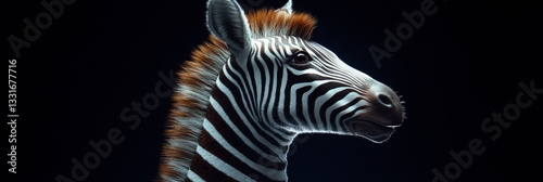 © Ilja, Fototapeta premium Studio Portrait of a Zebra Head and Neck Against. Dark Background, Capturing Animal Beauty