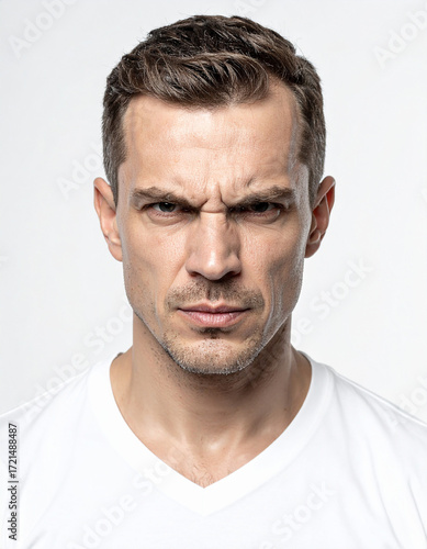 © AIDO, Obraz premium Studio portrait of an angry man on white background