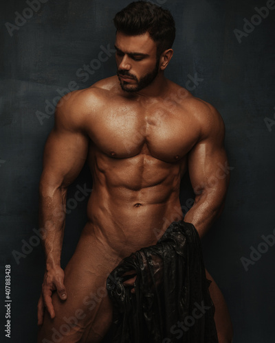 © Serge Lee, Fototapeta premium Studio portrait of naked hunk looking down