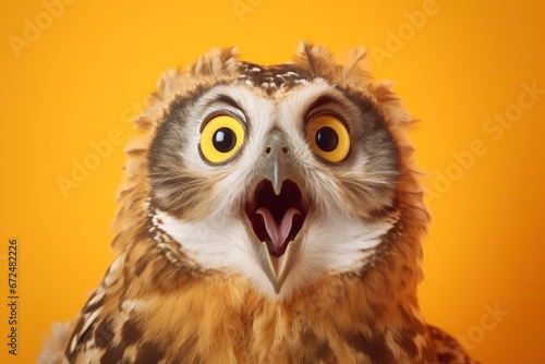 Fototapeta premium Studio portrait of shocked owl with surprised eyes