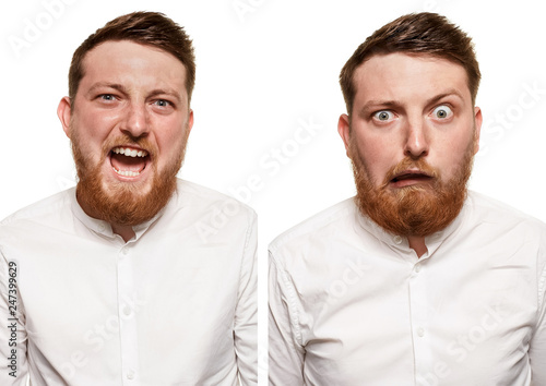 © nazarovsergey, Fototapeta premium Studio portrait of young handsome smiling man with beard