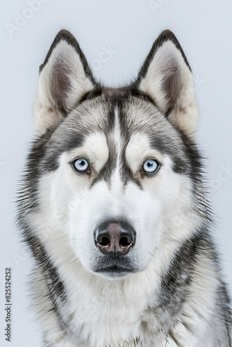 Obraz premium Studio portrait photo of a Siberian Husky on a white background. Close-up, front view.
