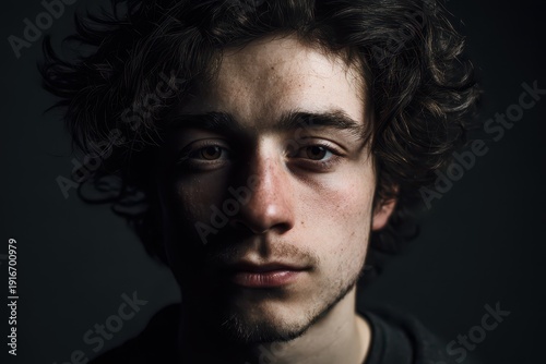 © Popelniushka, Obraz premium Studio portrait with dramatic low-key lighting and strong shadows