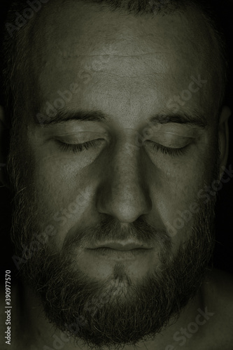Fototapeta premium Studio session with one muscular man in low-key light conditions