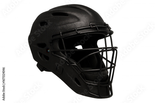 © PNG Kingdom , Naklejka premium Studio shot of a black catcher's helmet, isolated on a transparent background, ready for action on the baseball field