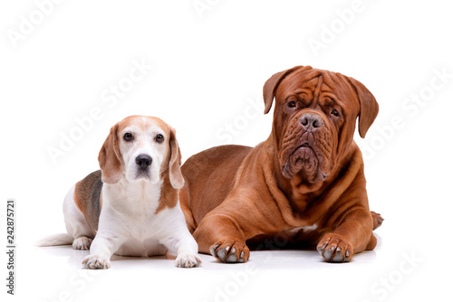 Obraz premium Studio shot of an adorable Dogue de Bordeaux and a beagle