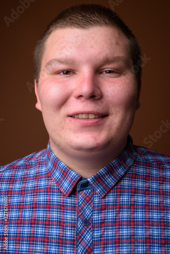 Obraz premium Studio shot of overweight young man against brown background