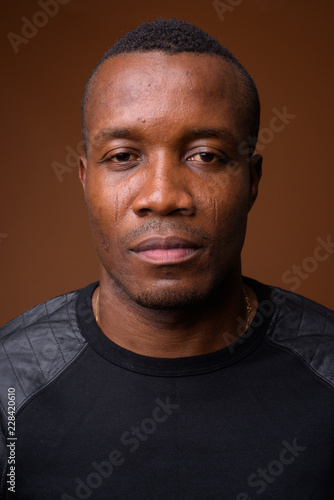 Obraz premium Studio shot of young African man against brown background