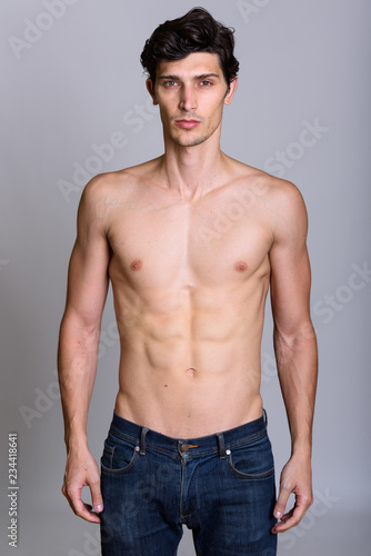 © Ranta Images, Fototapeta premium Studio shot of young handsome Brazilian man standing shirtless