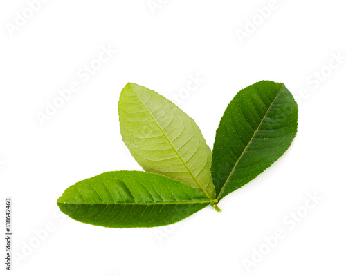 © trongnguyen, Fototapeta premium Studio shot three green Asian leaves leaf isolated on white