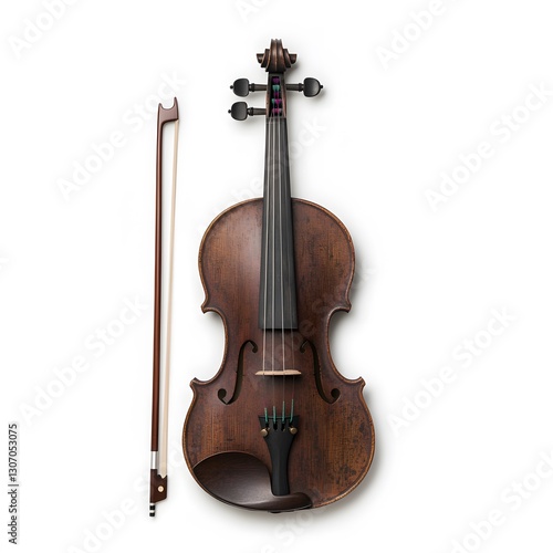 Fototapeta premium Studio shot violin, bow, isolated, white background, musical instrument, website, product