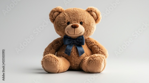 © Rizqiana, Obraz premium Studio Teddy Bear Sitting, Bow Tie, White Background