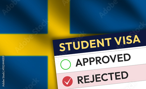 © visuals6x, Fototapeta premium Study visa of Sweden rejected concept with paper and waving flag in the backdrop