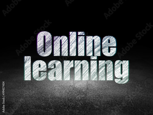 Naklejka premium Studying concept: Online Learning in grunge dark room
