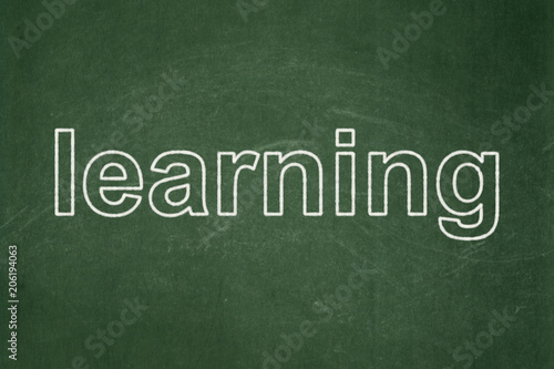 © Maksim Kabakou, Obraz premium Studying concept: text Learning on Green chalkboard background