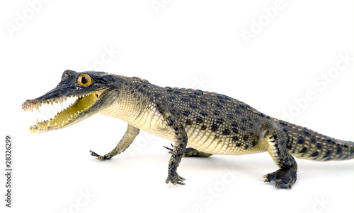 © RedTC, Naklejka premium Stuffed animal of a small crocodile on white background