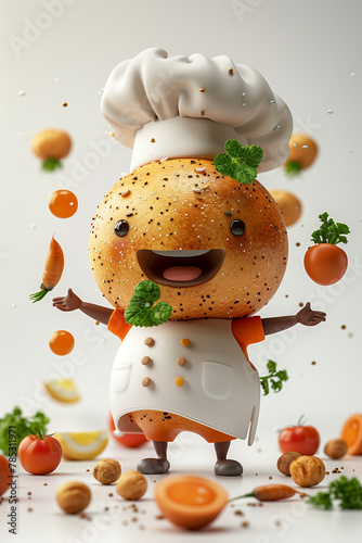 Obraz premium Stuffed sweet bun with chefs hat on head