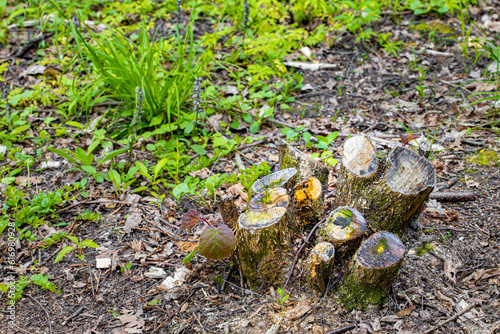 Obraz premium Stump from a sawn tree in the forest .