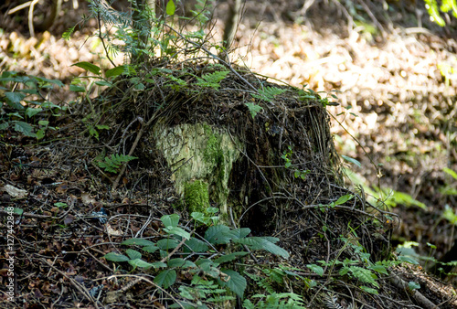 © Petro Teslenko, Obraz premium Stump in the spruce forest