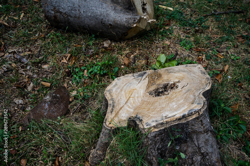 Fototapeta premium stump with green grass in forest