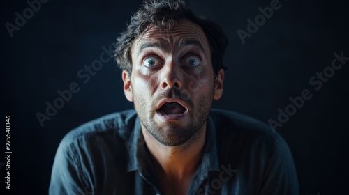 © Adi, Fototapeta premium Stunned man feeling scared isolated with white highlights