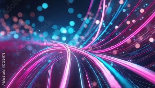 © netsay, Naklejka premium Stunning Abstract Background Featuring Pink and Blue Glowing Neon Lines with Bokeh Lights Perfect for Data Transfer Concept Visuals and Modern Digital Designs