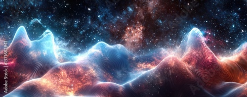 © Phunnada, Obraz premium Stunning Abstract Cosmic Landscape with Colorful Starry Night Sky