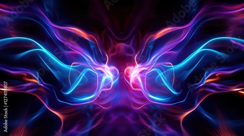 © Alex, Fototapeta premium Stunning abstract representation of colorful light waves intertwining in a dynamic dance. Perfect for backgrounds, artistic projects, or visually striking designs.