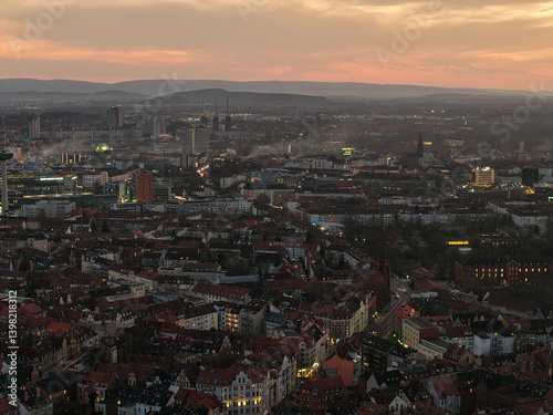 Obraz premium Stunning Aerial View of a Beautiful Cityscape at Dusk and Evening with Vibrant Lights Hannover List Lower Saxony