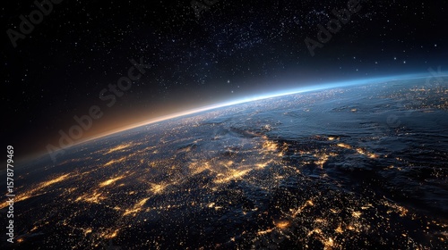 Obraz premium Stunning Aerial View of Earth from Space at Night with City Lights and Stars...