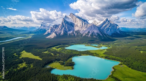 Fototapeta premium Stunning aerial view of majestic mountains and serene lakes during daytime in...