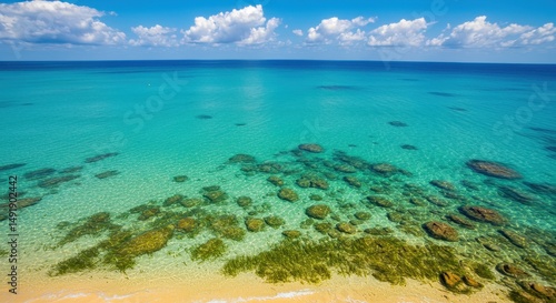 Obraz premium Stunning Aerial View of Turquoise Ocean and Sandy Beach